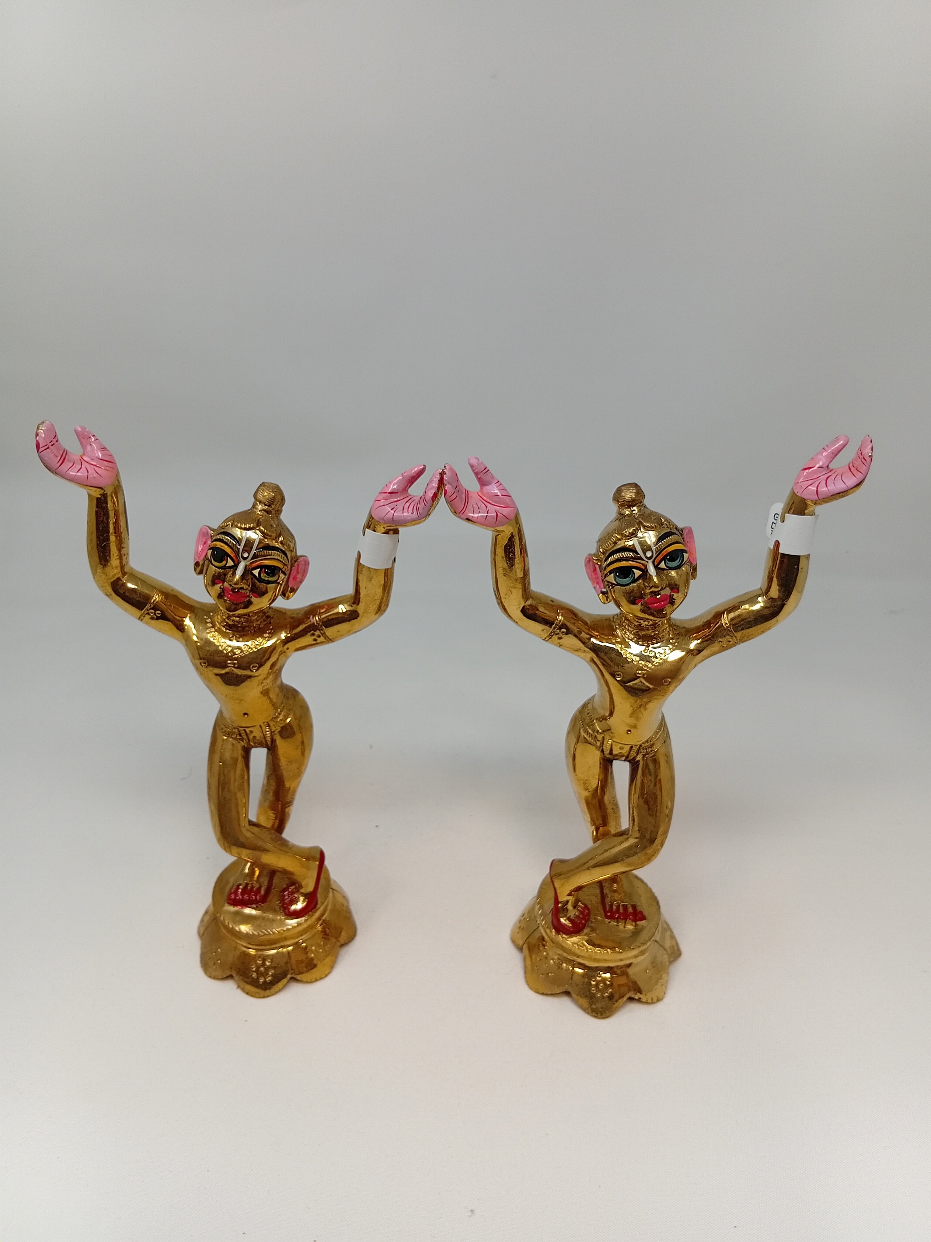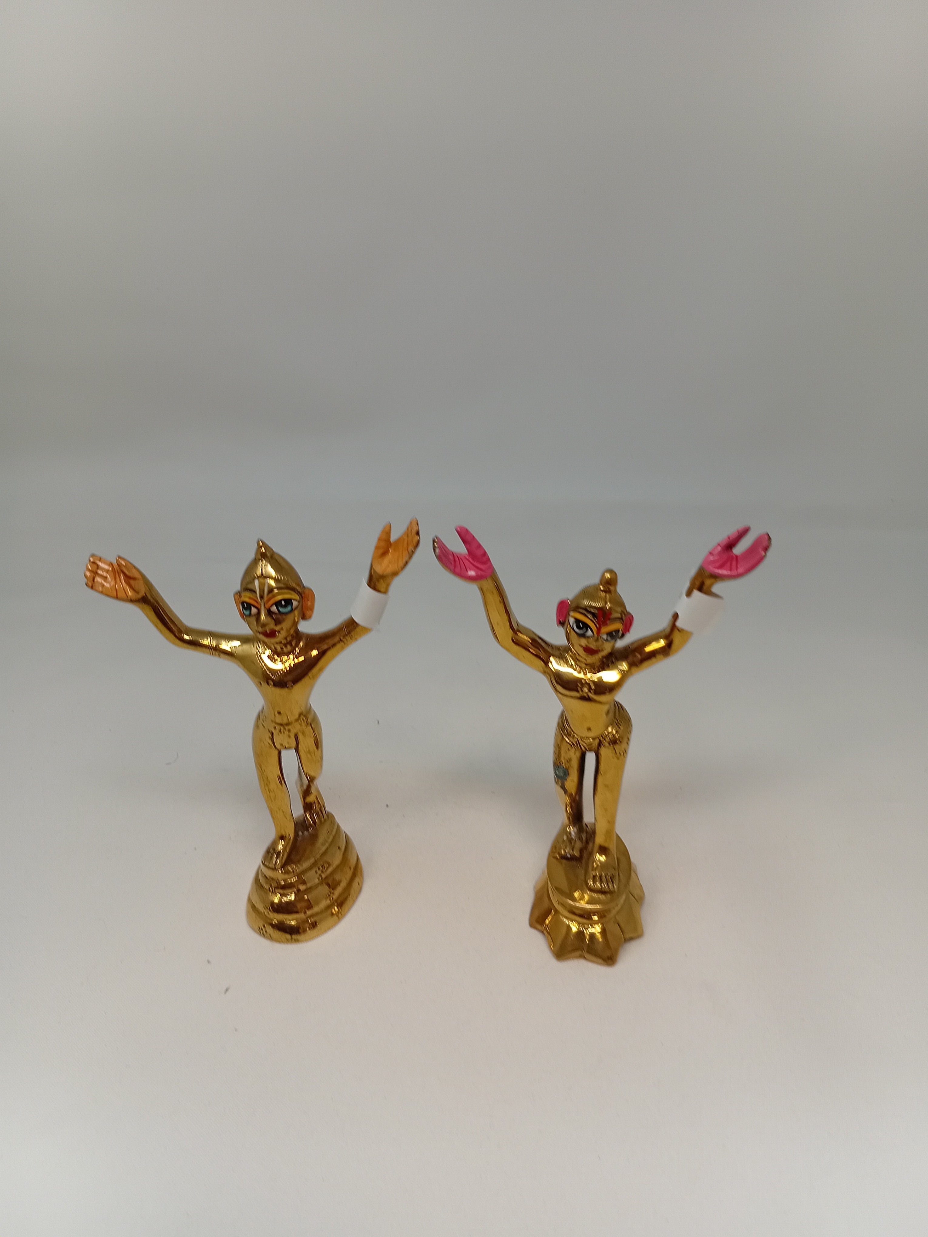 Painted and unpainted brass Deities of Lord Caitanya Mahaprabhu and Lord Nityananda Prabhu with clothes.